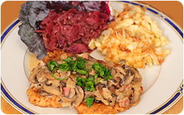 To serve, place a Schnitzel on a plate and top with the sauce. Sprinkle some chopped parseley over the sauce.
